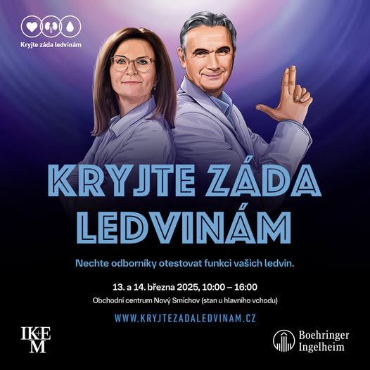 Už zítra a v pátek! 🔬 Přijďte si nechat zdarma otestovat ledviny! 13. a 14. 3. 2025, 10 - 16 h., 📍 OC Nový Smíchov, Praha Víte, že chronické onemocnění ledvin má až milion Čechů, ale většina o tom neví? Ledviny totiž nebolí, i když nefungují správně. Proto je prevence tak důležitá! Co vás čeká? ✅ Měření krevního tlaku ✅ Test hladiny cukru v krvi ✅ Orientační vyšetření funkce ledvin z kapky krve Na místě bude MUDr. Silvie Rajnochová-Bloudíčková, Ph.D., DBA, vedoucí Neurologické a transplantační ambulance IKEM. Událost Kryjte záda ledvinám, kterou 13. a 14. března, u příležitosti Světového dne ledvin, pořádá v Praze IKEM ve spolupráci se společností Boehringer Ingelheim. 👨⚕️ Přijďte a ujistěte se, že jsou vaše ledviny v pořádku. Událost zde: 👉 https://bit.ly/Udalost_KryjteZadaLedvinam (fb)