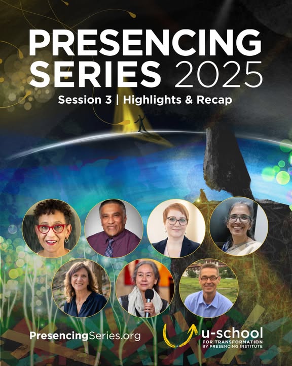 Check out a selection of highlight video clips from Session 2 of the #PresencingSeries: https://bit.ly/SeriesHighlights Last Thursday was our 3rd session of the Presencing Series - on the theme of EDUCATION FOR HUMAN AND PLANETARY FLOURISHING On our Series Updates page we've added a full written recap of the session alongside a curation of key video moments from session including: • Otto Scharmer (Author of Presencing: 7 Practices for Transforming Self, Society and Business) • Dayna L. Cunningham (Dean of Tufts University's Tisch College of Civic Life), • Rohan Arul-Pragasam (Superintendent of Schools for the Chilliwack School District, British Columbia, Canada), • Venla Bernelius (Senior Specialist at the Finnish Ministry of Education, Finland), and • Deepthy Raghavendra (Professor at ITM Skills University, India). Check-out the clips here: https://bit.ly/SeriesHighlights Next week is Session 4: Transforming Business and Money to be a Force for Good. #TheoryU #SystemsChange #ChangeLeadership #Education #Teachers #FutureofEducation #TransformingEducation #SchoolAdministration #TeachforGood (fb)