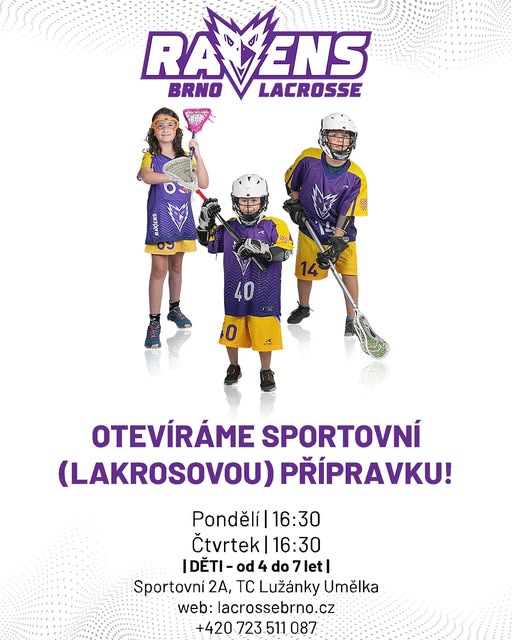 ❗️Zima je pryč, pojďme se hýbat! ☀️🏃♂️ Sportovní (lakrosovou) přípravku pro děti 4–7 let startujeme už 3. dubna. Pohybová všestrannost, akční hry a spousta zábavy – to vše pod vedením zkušených trenérů. ✨ Rozvoj těla i ducha 🥍 Prvky lakrosu a pohybové hry 📍 Sportoviště v centru Brna ✅ Bezplatné zkušební tréninky v průběhu dubna Tak neváhejte a dorazte se svými ratolestmi! 👧🏽👦🏼 (fb)