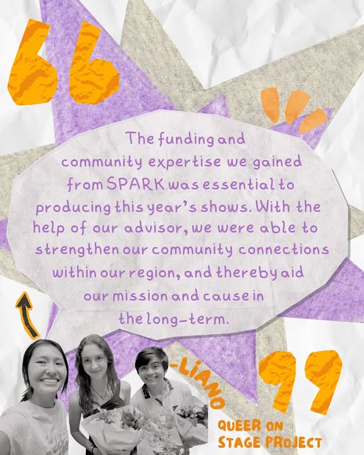 Are you ready to SPARK change like our friends @queeronstageproject?!? ✨ When their school banned their play for having LGBTQ+ themes, they found YAF and applied for a grant to make sure the show went on. We’re so proud of them—and we want to keep empowering young people like Liano! Head to our bio to learn more about our programs and offerings. 📲 (fb)