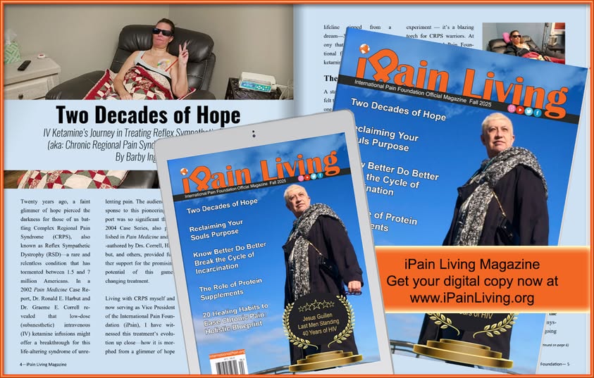 Two Decades of Hope: Discover how IV Ketamine has transformed lives for chronic pain sufferers. Read more in iPain Living Magazine! #iPainLiving #MyPainIsLike www.internationalpain.org #Ketamine #DrHarbut (fb)