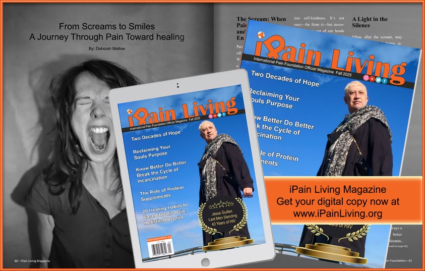 From screams to smiles: A journey through pain to healing in iPain Living Magazine. #iPainLiving #MyPainIsLike www.internationalpain.org (fb)