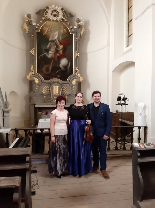 Koncert v kostele sv. Jiří Lubné u Rakovníka dne 21. 8.2021: Manželé Daniela a Adam Grygarovi z Národního divadla moravskoslezského v Ostravě, a prof. Regina Bednaříková z Ostravské konservatoře. (fb)