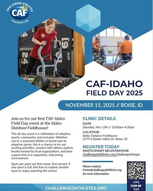 BASE is excited to join the Challenged Athletes Foundation Field Day on November 15th! Come ready to move, play, and connect as we celebrate adaptive sports and inclusive community. From fun activities to building new friendships, it’s going to be an unforgettable day. Location: Idaho Outdoor Fieldhouse 3179 E Barber Valley Dr, Boise, ID Time: 10:00 AM – 4:30 PM Registration is required. Please register here: challengedathletes.org/idahosportexpo We can’t wait to see you there! 💪⛷️🏅 #AdaptiveSports #InclusionMatters #BoiseEvents #ChallengedAthletes #IdahoOutdoor #CommunityThroughSport #BASEBoise #BoiseLife #BoiseCommunity #GetMovingBoise (fb)