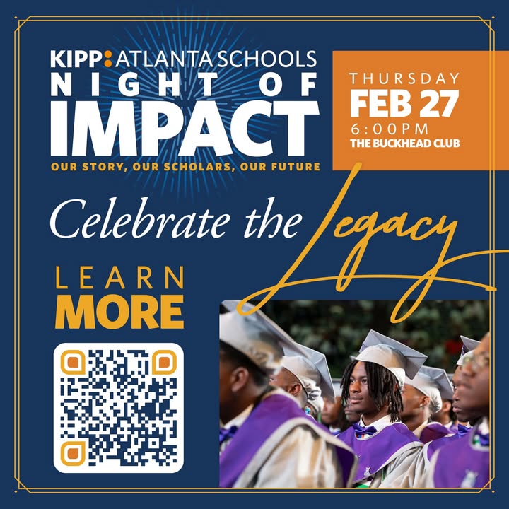 Mark your calendars for KIPP Atlanta Schools’ Night of Impact on Thursday, February 27 at 6:00 PM at The Buckhead Club! We’re coming together for an evening of powerful performances, inspiring storytelling, and the opportunity to make a real difference in our scholars’ futures. Connect with community leaders and fellow advocates who share our passion for education! RSVP now at https://host.nxt.blackbaud.com/registration-form/?formId=c70d32de-301c-4ebc-8f9c-1be9bc73ff31&envId=p-qolr5iwLvkeIbFLeAKejjg&zone=usa to secure your spot and help us shape the next chapter of KIPP Atlanta Schools! #CelebrateTheLegacy #KIPPATLNightOfImpact #OurStoryOurScholarsOurFuture (fb)