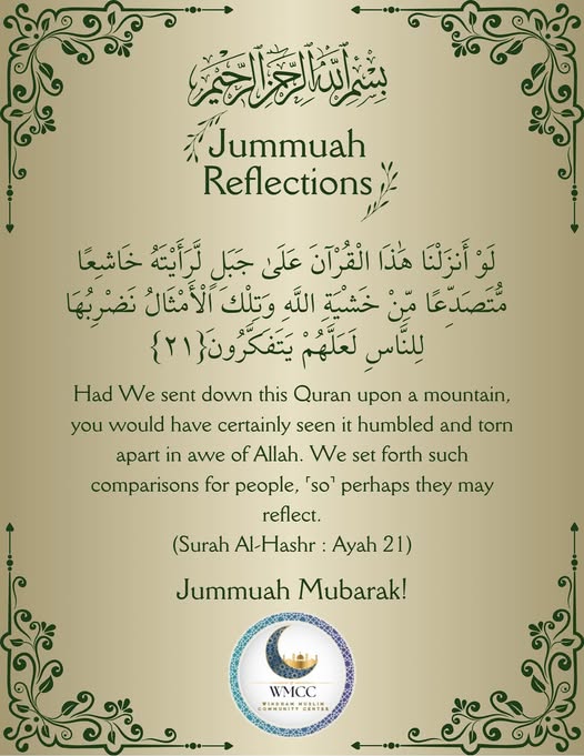 Jummah Reflections 📿 - ✨This ayah shows us that if even a mountain can crumble from the message of the Quran, then so can our hearts. ✨The Quran is not meant to be just read but understood and felt as well. 📿May Allah soften our hearts through his words and guide us on the straight path. Ameen🤲 (fb)