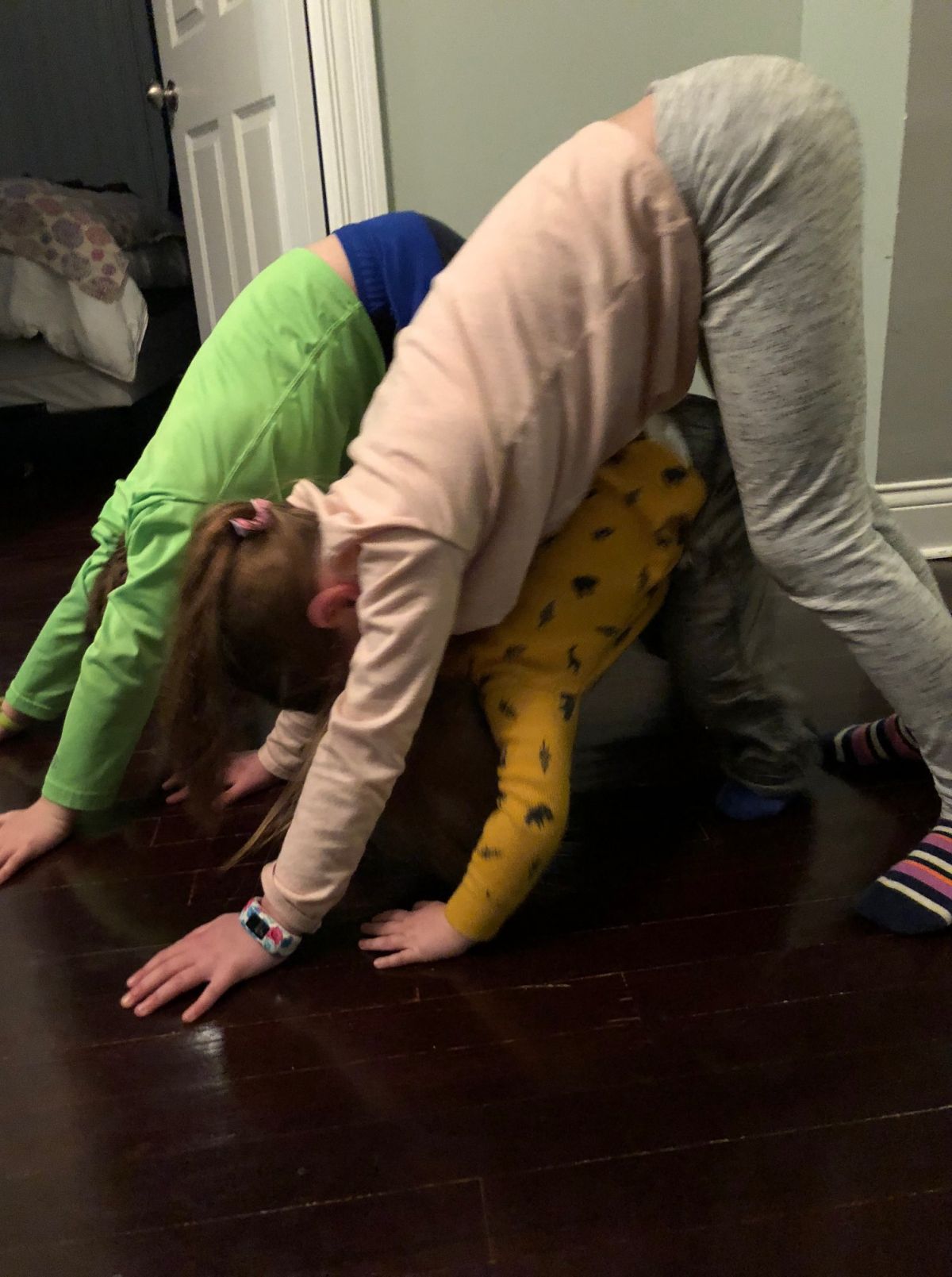 Just splittin’ up the week like a Wednesday! #familyfitness #yogaforkids #calmkids #mindfulness #happy (fb)