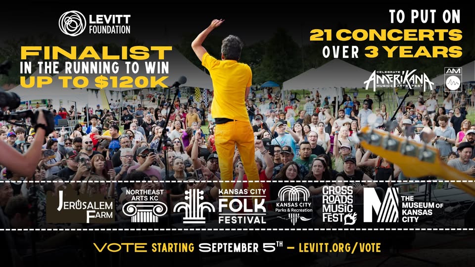 Fundraising goal EXCEEDED! 🔥 Plus, a HUGE announcement for 2026 👀 Thank you to sponsors, donors, and partners who made it possible to exceed the festival cuts by the NEA! Not only was the festival a platform for and investment in local artists, it was a healing gathering that generated resources to provide free youth music programs year-round. Check out the impact --> Now, we have the opportunity to use our voices and our votes to bring an entire concert series to KC in 2026-28! We're talking 21 total concerts, each with nationally touring headliners, local openers, and curated community vendors. We're so thankful to be moving on to this round of 100 across the country; if we make it into the top 50 in the voting round, we move on to be considered as finalists! Thank you to our community partners and curators on this project Jerusalem Farm Northeast Arts KC Kansas City Folk Festival Kansas City Parks and Recreation CMFKC The Museum of Kansas City Spread the word and vote on September 5th! Register at levitt.org/vote to be notified when voting goes live 💥 (fb)