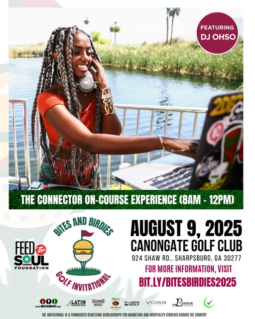 The Connector On-Course Experience 🎶⛳ Start your morning with good vibes and even better beats. From 8AM–12PM, DJ Ohso will be spinning live while you sip, snack, and watch the tournament action unfold. Whether you’re here for the golf, the music, or the mimosas — The Connector is where it all comes together. 🎟️ Grab your tickets at the link in bio. #BitesAndBirdies #DJOhso #TheConnector #BlackGolfers #FeedTheSoulFoundation (fb)