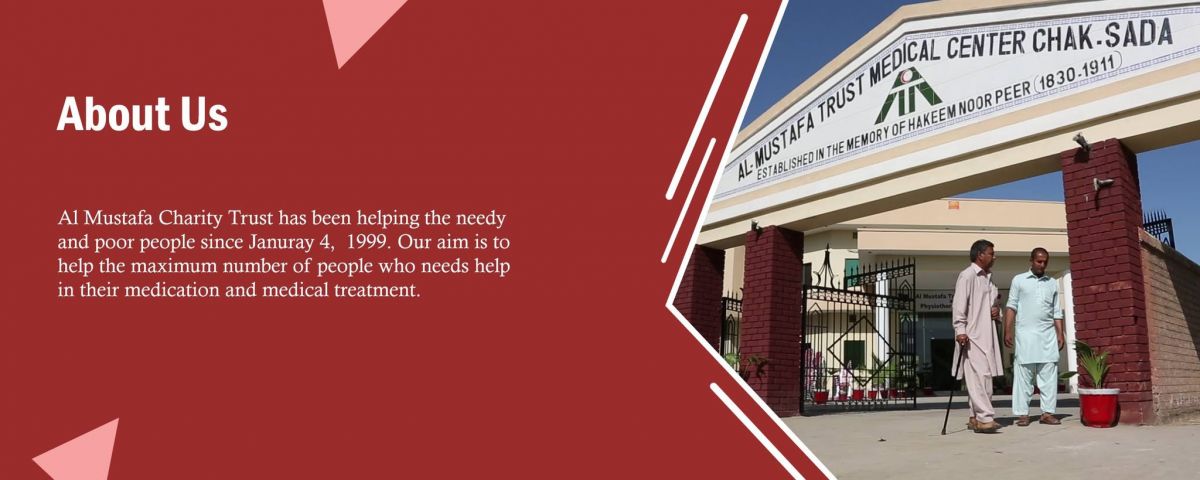 Al Mustafa Charitable Trust Our Mission Vision Change the lives of those in need all over the globe. Your generous support goes towards Al Mustafa Charitable Trust in providing free health care free solar and hand pump projects Rashan distribution Rozagar Help for Widows Orphans Handicap free Primary Education Food drive to the deserving people in Pakistan. It makes it possible for us to continue our work. Donate today for a more compassionate world.