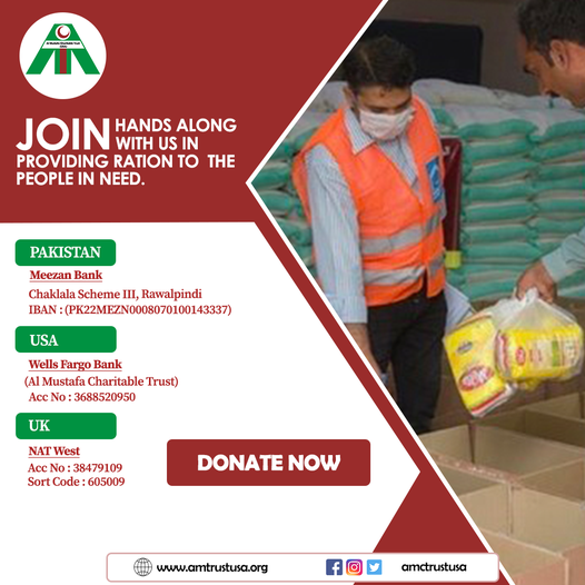 The situation in Pakistan is dire. 15% of the children under 5 are suffering from acute malnutrition. Many people’s access to food, leaving thousands of Pakistanis food insecure. Many people have lost their daily income and have no access to food .Al-Mustafa Charitable trust is working in Pakistan to put an end to hunger. A donation of $50 will supply a family of five with clean and hygiene food items and protect them from covid-19 For Donation, PleaseVisit: https://amtrustusa.org For any Query, Please Call Us: USA: +1 571 2410073 #donation #donations #donate #goodcause #givingback #helpingothers #charity #education #edu #education #edibles #donationsneeded #helping #help #helpinghands #helpingeachother (fb)