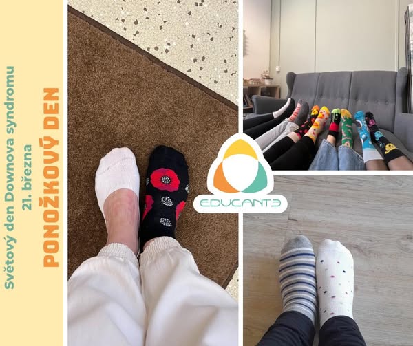 Ponožkový den v Educante! 🤪🧦 🟡Dnes - 21. března - je světový den Downova syndromu a lidé po celém světě si ho připomínají nošením odlišných ponožek. Letos jsme se zapojili i my v Educante. 🧡 (fb)