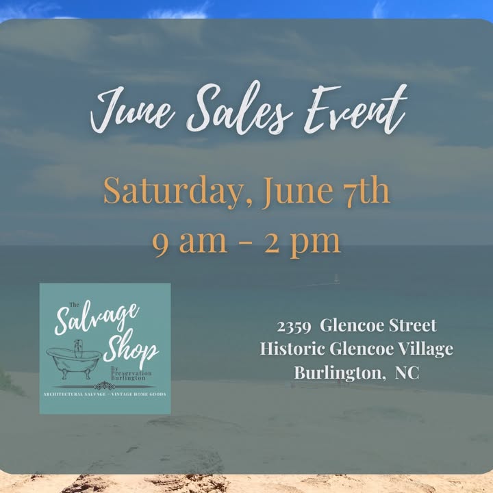 Home About Us The Salvage Shop Events Annual Tour of Homes Get Involved Community Sponsors Historic Property Grants Membership Donate Shop. More Protecting and celebrating the architectural and historic heritage of Burlington NC and the surrounding area. The Town of Company Shops founded in 1859 A history rich in the railroad industry and textiles. Saving the planet one salvaged piece at a time.