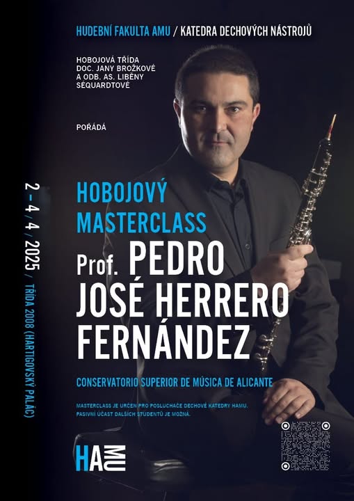 Hobojový masterclass s profesorem Pedrem José Herrerou Fernándezem 🎶 Zveme vás na jedinečný masterclass, který proběhne 2.–4. dubna 2025 na HAMU v Hartigovském paláci. ➡️ Možnost účasti: ❗ Pouze pasivně a po osobní domluvě s doc. Janou Brožkovou. 📩 Kontakt: j.brozkova@seznam.cz Těšíme se na vás! 🎵 (fb)
