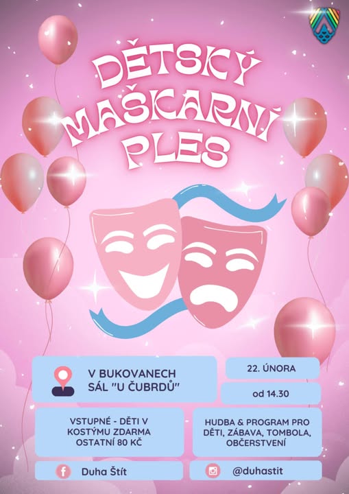 V sobotu 22. února pořádáme v Bukovany - okr. Olomouc dětský maškarní ples. Na koho se můžeme těšit? 😍 (fb)