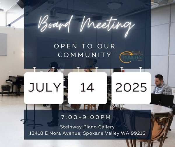 The team at MusicFest Northwest hopes you and your families are having a wonderful and restful summer! 🎹🌊🌞 Over here, we have been working hard at our efforts to organize the next great MusicFest event. At this time, we are at an inflection point, as many arts organizations are, and we need our creative and collective minds to come together and work out a plan to ensure MFNW perpetuates for many more years. If you have engaged with us in the past as a participant, teacher, volunteer, adjudicator, or supporter, please consider joining us for a very important meeting about MFNW's future. Information following: 📍Monday, July 14 - 7:00pm to 9:00pm 🎶Location: Steinway Piano Gallery (13418 E Nora Avenue, Spokane Valley, WA 99216) Transparently, MusicFest Northwest costs about $180K per year to run as it did this year. The last three years have seen incredible growth, energy and excitement all around, culminating in the celebration of our 80th year with over 1000 participations! However, at present, we do not have the funds to continue in the same format into 2026. Our goal is always to provide a community experience to engage young creatives of all kinds in the Inland Northwest region, and we would deeply appreciate your thoughts in our planning and potential restructuring efforts. We have received numerous letters from parents, teachers and participants who love the festival and have shared specific moments that made an impact. We know MusicFest provides an experience beyond measure - so let's meet and talk through where we are, and where we can go from here. Please consider attending our next public board meeting on Monday, July 14 at 7pm located at the Steinway Piano Gallery in Spokane Valley (information above). Feel free to email office@musicfestnorthwest.org with any comments, questions, or concerns. - - - #musicfestnorthwest #spokane #communityengagement #mfnw #spokanemusic (fb)