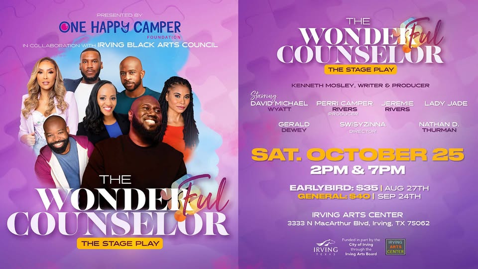 🌟 Dallas Natives Take the Stage! 🌟 Don’t miss Perri Camper and Lady Jade starring in The Wonderful Counselor – The Stage Play 🎭 alongside an amazing cast of talent. 📅 Saturday, October 25 | 2 PM & 7 PM 📍 Irving Arts Center | Irving, TX Presented by One Happy Camper Foundation in collaboration with Irving Black Arts Council Tickets going fast! https://bit.ly/4n6f39O (fb)