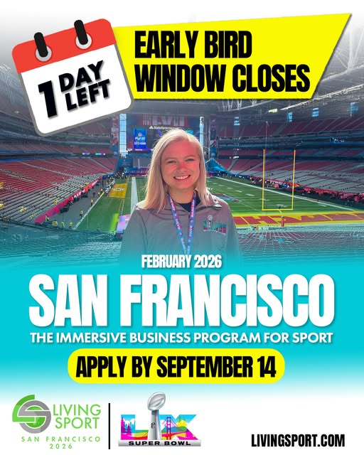 🔥 Last chance! Don’t miss exclusive benefits like official Super Bowl Week event access 🏈 + the final discount 🏟️ Apply by September 14 at https://livingsport.com/sanfrancisco Be part of the biggest week in sports—secure your spot today! #iamlivingsport #sportsbiz #sportsjob #sportmanagement #superbowl (fb)