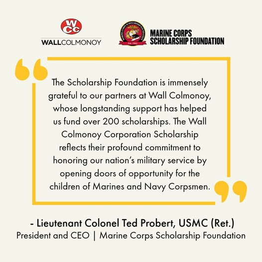 Thanks to the steadfast support of our partners at Wall Colmonoy, hundreds of Marine and Navy Corpsmen families have felt the life-changing impact of education first-hand. Since 2013, they've helped fund over 200 scholarships for military children. We’re grateful for their tremendous leadership, including veteran Marine Captains Bill and Nick Clark, who have helped us further our mission and honor the sacrifice of those who serve. (fb)