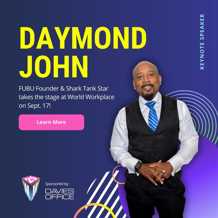 THE Daymond John will be a Keynote Speaker at #WorldWorkplace this year! You've seen him as a game-changing investor on Shark Tank. You know him as the CEO and Founder of FUBU, the brand that reshaped streetwear and built a global fashion empire with billions in sales. He's ALSO a bestselling author, a Presidential Ambassador for Global Entrepreneurship, a five-time Emmy-winning investor and he was just ranked one of the Top 20 Keynote Speakers in the World for 2024 by Real Leaders Magazine. And now, we're proud to add #WorldWorkplace Keynote Speaker to Daymond’s ever-growing list of accolades. 🔥 Check out the full speaker lineup and event details: https://worldworkplace.ifma.org/?utm_campaign=WW25-Keynote-Speakers&utm_source=facebook&utm_medium=social&utm_content=1747930801 (fb)