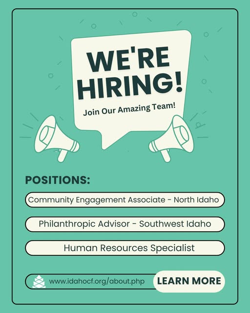 Have you heard the news?! We’re hiring across Idaho! The Idaho Community Foundation is looking for: • Community Engagement Associate (North) • Philanthropic Advisor (Southwest) • HR Specialist (Part-Time, Boise) Be part of a mission-driven team strengthening communities statewide. 👉 Details + Apply: https://www.idahocf.org/about.php #MakeMorePossible #NowHiring #InIdahoforGood #IdahoJobs (fb)