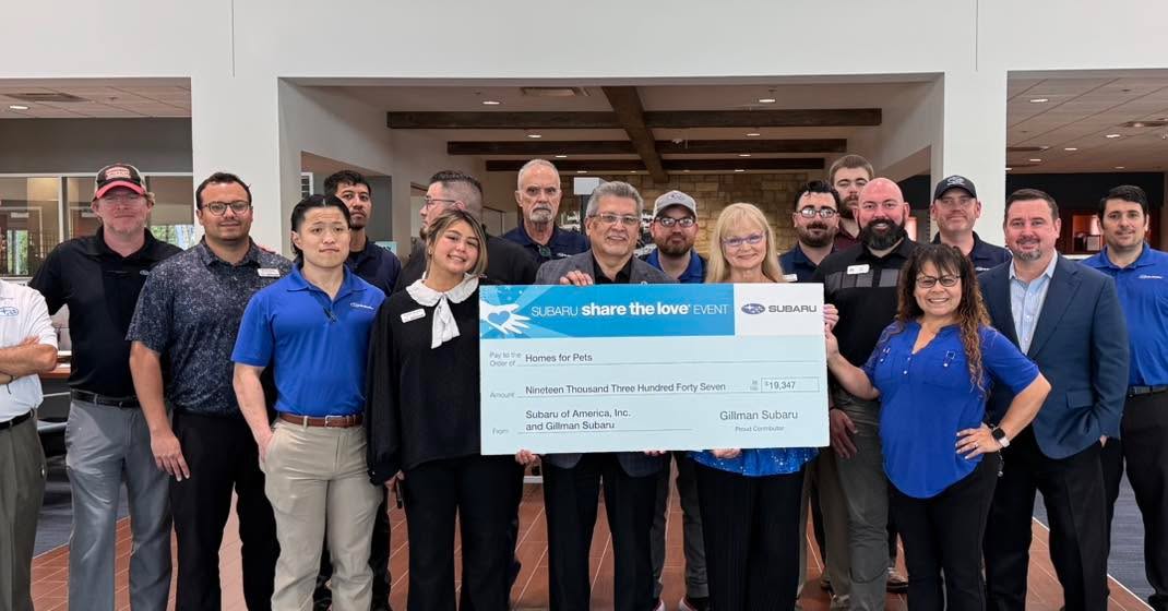 I want to extend our deepest heartfelt thank you and many paws up to Gillman Subaru in Selma for once again choosing us as one of their charities to support during the Share the Love event last winter! For each customer that chooses our name, Homes for Pets receives a percentage of the cars sold. It doesn't cost the customer anything. This is all from Gillman Subaru! This will go a long way toward helping with our massive vet bills. We love Gillman Subaru! 🐶💜😻 (fb)