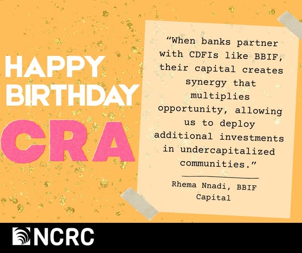 CDFIs are a vital small business lender for underserved entrepreneurs. The Community Reinvestment Act encourages banks to work with CDFIs to expand economic opportunity in lower-income communities. Learn more: www.ncrc.org/communityreinvestmentact/ #JustEconomy #ProtectCRA #NHSIE (fb)