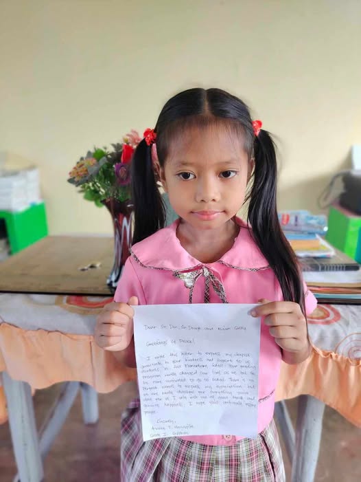 "I write this letter to express my deepest gratitude to your kindness and support to use students in Sua Elementary School. Your feeding program really changes our lives as we get to be more motivated to go to school. There is no perfect words to express my appreciation but we are really thankful for everything you've done for us. I only wish you all good health and genuine happiness. I hope you'll continuously inspire people. " Arianne T. Mangilot ********************************* Please visit the Give Children Hope website to learn more about this wonderful program! http://www.givechildrenhope.org/about/ 100% of sponsor donations go directly to feed nearly 2,000 school children in the Maravilla and Dolores P. Tirdaor Elementary Schools in Iloilo and Sua & Dugcal Elementary Schools in Camarines Sur through the Meals at School Program of Give Children Hope (fb)