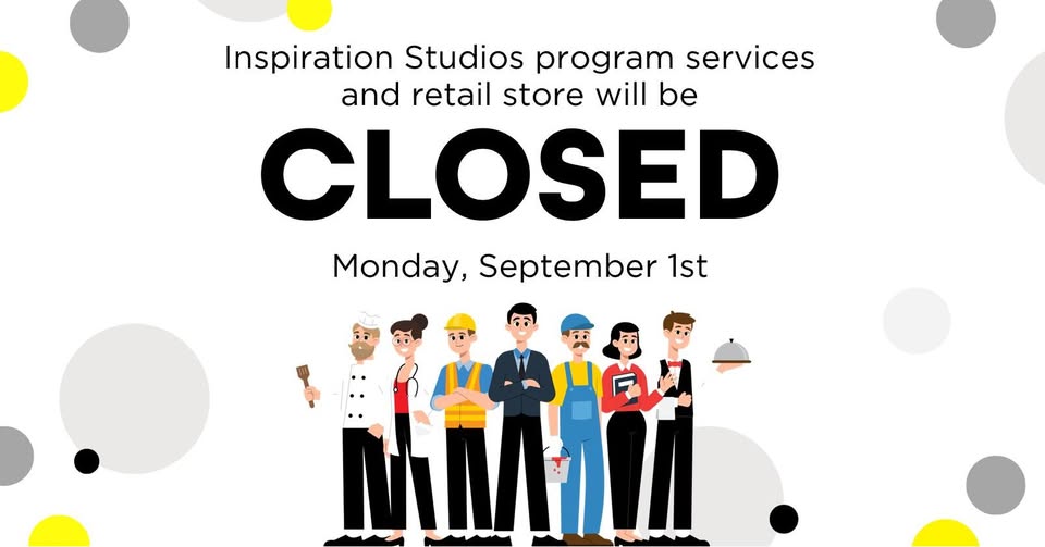 Inspiration Studios program services and retail store will be closed on Monday, September 1st in observance of Labor Day 🛠️ We wish you a safe, happy, and relaxing holiday! 🎉💙 (fb)