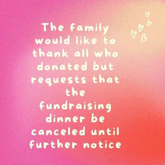 Adhering to the family's wishes, the spaghetti dinner on Sept 29th is CANCELED until further notice. They wish to thank all who donated and will still receive your donations for Jonathan & all they have endured this far. Please keep them in your thoughts and prayers. 💕 (fb)