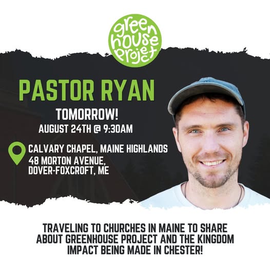 Pastor Ryan is continuing his travels through Maine tomorrow! He'll be at Calvary Chapel, Maine Highlands at 9:30AM! (fb)