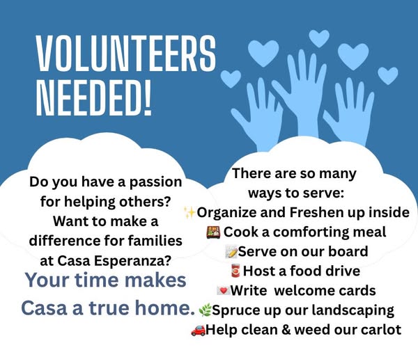 Want to get involved at Casa Esperanza? We can always use an extra hand or two! Whether you’re an individual, family, school group, sports team, office crew, or looking for community service hours, we’ve got meaningful ways to help. If interested please reach out via phone or email: 📱(505)246-2722 📧 lsullivan@casanm.org (fb)