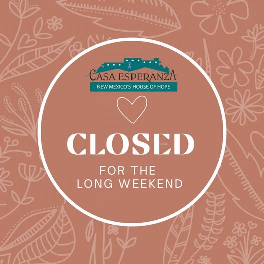 Reminder: Casa Esperanza's front desk will be closed for the long weekend. We look forward to seeing you all on Tuesday! What are your plans for the three-day weekend? (fb)