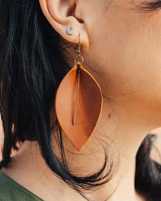 Laurel Earrings are the perfect blend of boldness and grace. Crafted from soft vegetable-tanned leather and shaped like the delicate laurel leaf. Each one is ultra-lightweight, and adds a natural beauty to your look—while supporting women rebuilding their lives with dignity. (fb)