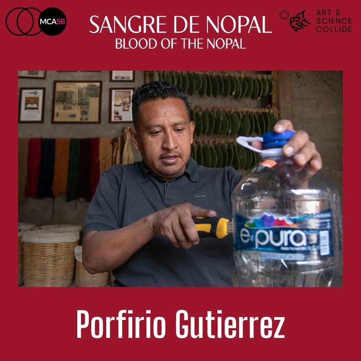 We would like you to meet Ventura-based Zapotec Artist Porfirio Gutierrez! We had the privilege of taking a group of Santa Maria and Oxnard youth to his studio for a day of passing down knowledge that he holds as a custodian of traditional knowledge of cochineal. Along with Tanya Aguiñiga, Gutierrez was an integral part of developing this critically acclaimed exhibition on view today. Las Horas que Caminé/ The Hours I Walked, 2024 - Video performance On view now, Sangre de Nopal/Blood of the Nopal: Traditional Ecological Knowledge and Contemporary Art, MCASB’s Getty PST Art: Art & Science Collide, up until April 27, 2025 Photo Credit: Javier Lazo Gutiérrez Brian Forrest (fb)