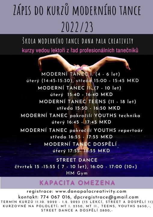 Zápis do nových tanečních kurzů spuštěn http://danapalacreativity.com/prihlaska/ Těšíme se na vás! 💃 (fb)