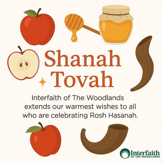 Interfaith of The Woodlands extends our warmest wishes to all who are celebrating Rosh Hashanah. As the Jewish New Year begins, may this season be filled with reflection, renewal, and sweet new beginnings. We are grateful for the richness of traditions that make our community so vibrant and diverse. L’shanah Tovah! Wishing you a good and sweet year! (fb)