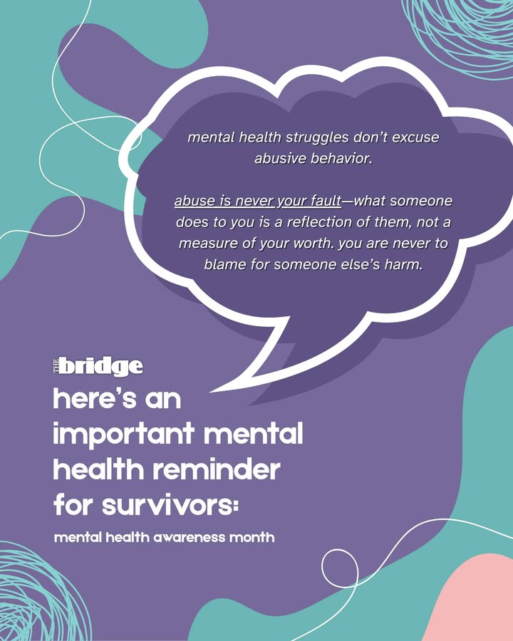 Too often, survivors are told to be more understanding, more patient, or more forgiving—especially when the person causing harm is struggling with mental health. But let’s be clear: mental illness may explain someone’s actions, but it does not excuse abuse. Everyone deserves compassion, but no one deserves to be hurt, controlled, manipulated, or broken down. Abuse is a choice, and it’s never justified—no matter what someone is going through. If someone is harming you and blaming their behavior on their struggles, you are not responsible for their healing, and you are not the reason for their actions. Your safety, your voice, and your emotional well-being matter. You are worthy of love, respect, and peace—and nothing someone else does can take that away from you. If you or someone you know needs support, we’re here. Always. 💚 #TheBridgeOverTroubledWaters #SupportSurvivors #EndDVSA #MentalHealthAwarenessMonth #YouAreNotToBlame #SurvivorSupport #CompassionWithBoundaries #EmpowermentThroughHealing #BreakTheStigma #MentalHealthMatters #HoustonGivesBack #ItsOkayToSayNo #HealthyBoundaries #HealingIsPossible (fb)