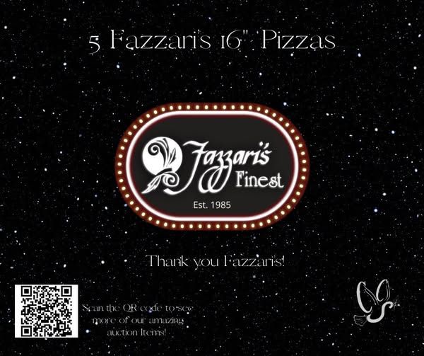 🍕✨ Auction Item Alert! ✨🍕 Get ready to bid on 5 legendary pizzas from Fazzari’s!! Don’t miss out — your taste buds will thank you! 🙌 (fb)