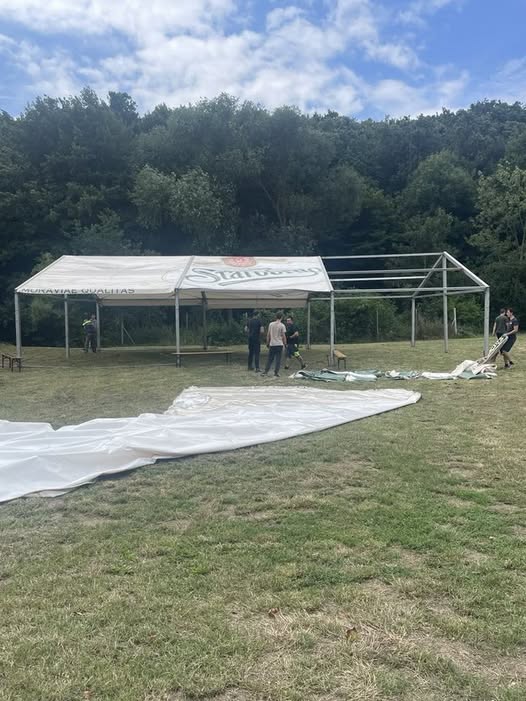 Velkokapacitní stan na sobotní rybářský karneval se už staví a kdyby náhodou došlo v sobotu na přeháňky budete se mít kam schovat 🤩 Další kryté místa k sezení budou u hlavní budovy 🤩 (fb)