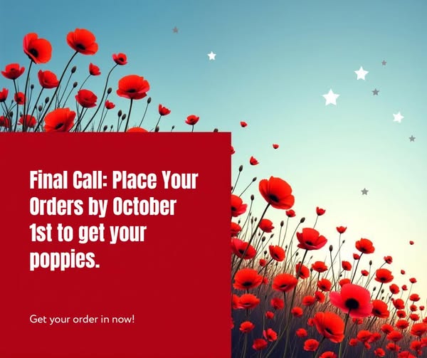 Poppy Orders are due to Department by October 1st. Get your orders in ASAP. (fb)