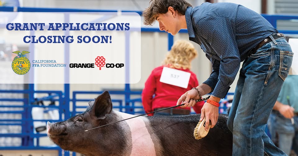 The clock is ticking! ⏲️ Applications for Grange Co-Op's new grant program are closing in just ONE week! With a new Grange Co-op store opening in Redding, in addition to their Yuba City location, this grant will be available exclusively to chapters in the Superior Region and Humboldt-Del Norte Section. A total of $5,000 in grant funds will be awarded for chapter projects, with recipients announced in November. Be sure to submit by Friday, October 17! 🔗 grangecoop.com/ffa-grant-request #FFAGrant #CaliforniaFFA (fb)