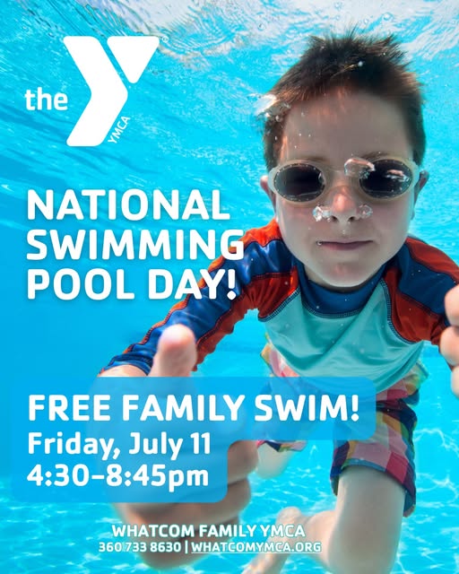 💦 Did you know the first swimming pools date back as far as 3000 BCE? On National Swimming Pool Day, we’re celebrating the joy of swimming because it's more than a sport. It's a life skill that builds confidence, connection, and health for all ages. 🏊♀️ This Friday, July 11, join us at the Whatcom Family YMCA for a Free Family Swim from 4:30 to 8:45 PM. Whether you’re blowing your first bubbles or relaxing with a float, this is your moment to dive in. Everyone is welcome (members and guests alike)! ➡️ Get the full details: whatcomymca.org/nspd #NationalSwimmingPoolDay #Whatcom #FindYourY #ForABetterUs (fb)