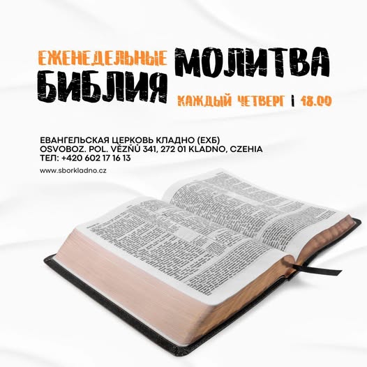 ✨ Сегодня в четверг в 18:00 приглашаем всех на встречу в церкви! ✨ Мы начинаем изучение очередной книги из Нового Завета – давайте вместе глубже погрузимся в Слово Божье! Это время размышлений, вдохновения и укрепления веры. А ещё у нас будет возможность в единстве воззвать к Господу в молитве, доверяя Ему свои нужды и прославляя Его. Не пропустите этот благословенный вечер! (fb)