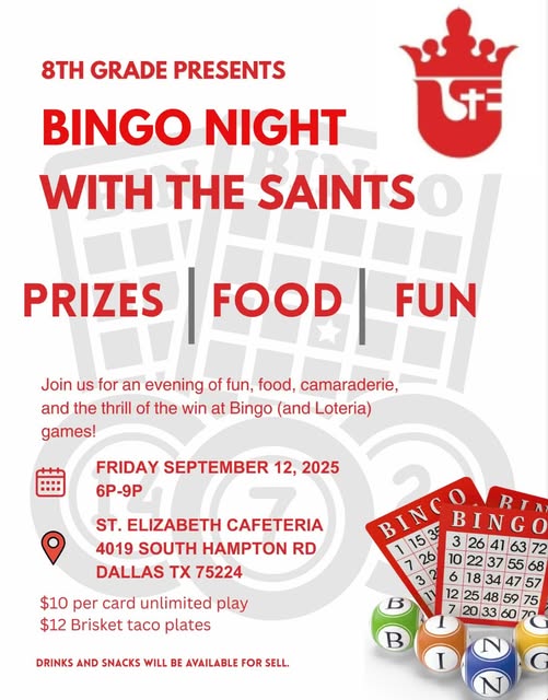 It’s B-I-N-G-O Night at St. Elizabeth this Friday night! Hope to see you there! (fb)