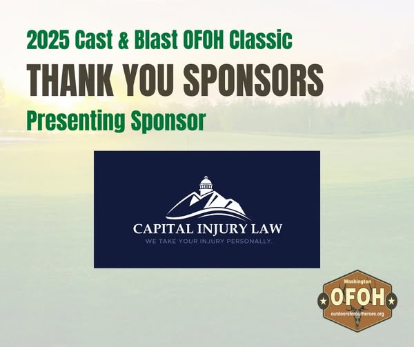 Thank you to Capital Injury Law Group for being the Presenting Sponsor the Cast and Blast Golf Tournament! Your sponsorship helps Outdoors For Our Heroes continue providing life-changing outdoor experiences for disabled veterans. We’re grateful to have your partnership on and off the course. (fb)