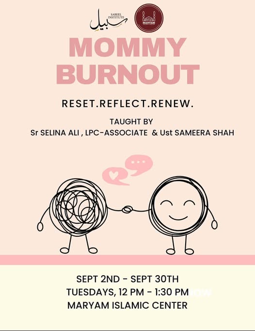 Back by popular demand! Sr. Selina Ali at SI — Mommy Burnout Rediscovering Purpose, Peace, and Balance Motherhood is a blessing, but it can also leave you drained physically, emotionally, and spiritually. Between endless demands, constant noise, and the pressure to “do it all,” many mothers find themselves running on empty, disconnected from the values and peace they long to live by. This course is a safe space to slow down, breathe, and realign your life with the purpose Allah created you for. Mommy Burnout is not about doing more, it’s about doing better, from a place of strength and clarity. #motherhood Registration is Open! https://Oursabeel.com/my-courses/mb2 (fb)