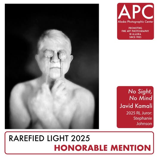 Thanks to all the #Alaska #Photographers that entered into #RarefiedLight2025 and congratulations to those chosen by juror @stephjohnphoto for this statewide, touring exhibition! This week, we’re sharing @javidkamaliprojects / @jakaphotography ‘s Honorable Mention! The Alaska Photographic Center (APC) is a statewide organization formed in 1983, with a mission to promote fine art photography in Alaska. Each year APC seeks out a nationally-recognized artist to jury the Rarefied Light show and present a public lecture and workshop. Rarefied Light is Alaska’s largest annual fine art photography exhibition. Best of Show: Bill Heubner’s “Matanuska Glacier Silt and Water, 3622” Honorable Mentions: Julie Jessen’s “Flash of Sunlight” Trevor Jones’ “Leap” Javid Kamali’s “No Sight, No Mind” Harry Walker’s “Doors, Fort Selkirk Yukon Territory” Dennis Walworth’s “Ice Texture” #apc #alaskaphotographiccenter #alaskaphotographer #alaska #fineart #fineartphotography #exhibit #travelingexhibition #show #anchorage #apu #fairbanks #uaf #kenai #soldotna #kpc #artshow (fb)