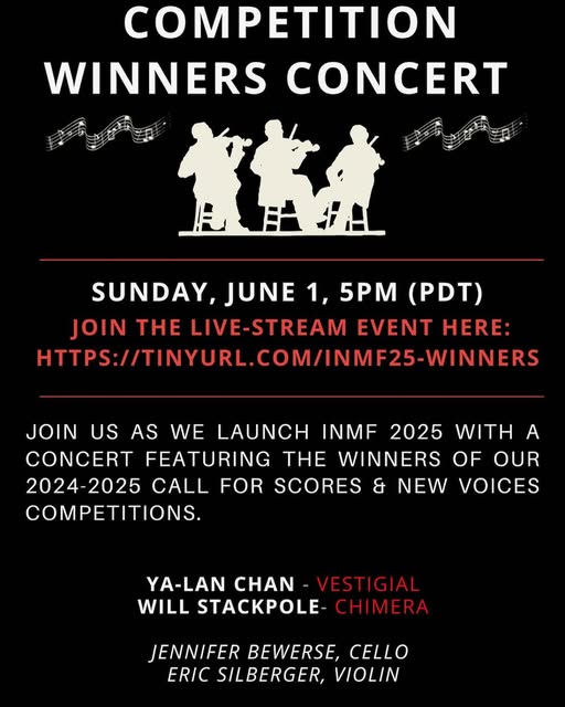 Next Sunday, June 1 we will be streaming new video recordings of the winners from our 2024/25 Call For Scores and New Voices Competitions. Join us to celebrate these great pieces! https://m.youtube.com/watch?v=oMQ7l0AnuJE (fb)
