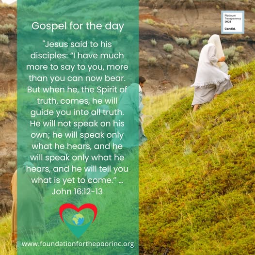 𝐈𝐭’𝐬 𝐭𝐡𝐞 𝐋𝐨𝐫𝐝’𝐬 𝐃𝐚𝐲 𝐚𝐧𝐝 “𝐅𝐚𝐭𝐡𝐞𝐫’𝐬 𝐃𝐚𝐲 𝐚𝐧𝐝 𝐭𝐡𝐞 𝐒𝐨𝐥𝐞𝐦𝐧𝐢𝐭𝐲 𝐨𝐟 𝐭𝐡𝐞 𝐌𝐨𝐬𝐭 𝐇𝐨𝐥𝐲 𝐓𝐫𝐢𝐧𝐢𝐭𝐲! Let’s take time to spend an hour in His presence, be with our Spiritual Family and be with our HEAVENLY FATHER!🙏 "Jesus said to his disciples: “I have much more to say to you, more than you can now bear. But when he, the Spirit of truth, comes, he will guide you into all truth. He will not speak on his own; he will speak only what he hears, and he will speak only what he hears, and he will tell you what is yet to come.” …John 16:12-13 𝐒𝐮𝐠𝐠𝐞𝐬𝐭𝐞𝐝 𝐏𝐫𝐚𝐲𝐞𝐫: Lord God, thank you for revealing yourself to me. Thank you for the gift of the Holy Trinity.. The Father, the Son and the Holy Spirit! Jesus has shown us how to restore our relationship with you Father and thank you for giving us the advocate, the Holy Spirit to give us the strength and courage to be aligned to your ways, whatever it takes. You are the healer of all wounds and sickness. Just as you brought healing to many, bring comfort and strength to those who are suffering today. May Your mercy and power touch every human’s heart and may our hearts be like yours, Amen! Journey with us as we continue what Jesus left us to do…. To take care of the POOR. Together, we can bring HOPE to THEM! For more information, please visit 𝒘𝒘𝒘.𝒇𝒐𝒖𝒏𝒅𝒂𝒕𝒊𝒐𝒏𝒇𝒐𝒓𝒕𝒉𝒆𝒑𝒐𝒐𝒓𝒊𝒏𝒄.𝒐𝒓𝒈 #VerseOfTheDay #HealingInChrist#RestoringourRelationshipwiththeFather#John16:12-13 #FaithAndHope #FoundationForThePoor (fb)